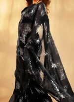 Introducing the Dark Blue Faux Georgette Sequins Sari A Timeless Elegance When it comes to traditional Indian attire the saree stands out as a symbol of grace femininity and enduring beauty. Among the myriad options available the Dark Blue Faux Georgette Sequins Sari emerges as a masterpiece of elegance blending modern design with traditional craftsmanship to create a garment that is truly timeless. The foundation of this saree is the exquisite faux georgette fabric. Known for its lightweight and sheer texture faux georgette drapes beautifully allowing you to move with grace and comfort.