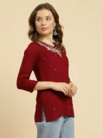 Maroon Kashmiri Silk Work Short Kurti