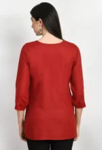 Home Short Kurtis Red Self Aari Short