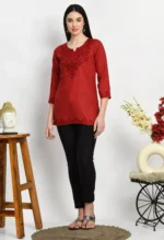 Maroon Kashmiri Silk Work Short Kurti